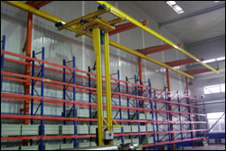 轻型起重标准组件仓储起重机最重要的特点在于,能够最充分地利用室内空间高度、进库、出库、运输和存取经过一道工序完成,不需要梯子和叉车,也不需要其他辅助工具。 |